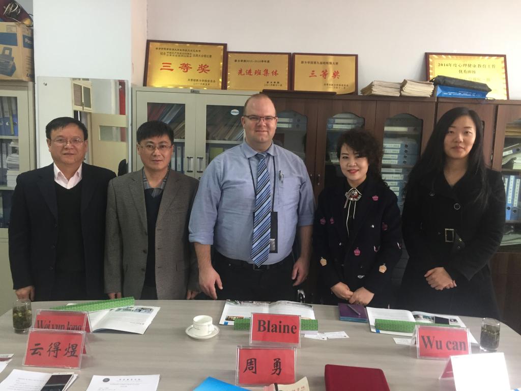 2017年3月6日,美国海格斯大学副董事长兼国际公司经理Blaine D. Hone、国际公司中国事务部部长吴璨女士、中国办公室主任魏云龙先生一行到访太阳成tyc122cc集团。双方就合作办学项目进行了深入的沟通了解,国际教育经理周勇、副经理云得煜、教学科研秘书赵国梅等人参加了会议,双方都对以后的合作充满信心。