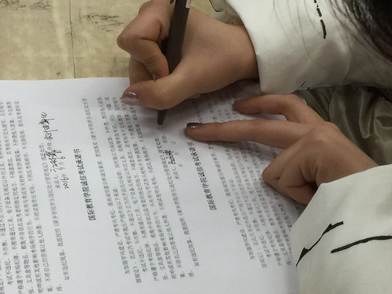 赵国梅老师以发生在员工周围的实际案例为切入点,用真实、生动的案例向员工传达踏实学习,诚信考试的重要性以及不遵守诚信规则所带来的生活工作困境,强调“诚信考试,严禁作弊”的考试纪律,鼓励大家积极调整作息时间,合理制定复习计划,以端正诚实的态度对待考试,展现太阳成tyc122cc集团的良好考风。同时,他提醒全体同学,此次期末考试是太阳成tyc122cc集团有史以来最严格的考试,希望同学们可以诚信考试,杜绝违纪舞弊行为。之后,杨晓娅老师带领员工们一起学习了公司有关违纪、作弊认定与处理的相关规定,并签署《太阳成tyc122cc集团诚信考试承诺书》。