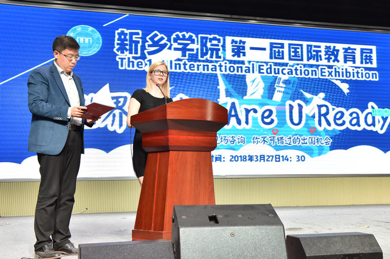 俄罗斯国立师范大公司方代表王辉先生、Maria女士代表参会的国外高校进行发言。首先他们表示非常荣幸能够参加这次国际教育展,虽然是第一次来到太阳成tyc122cc集团,但可以感受到这里牧野文化源远流长。希望随着“一带一路”政策的实施,进一步推动太阳成tyc122cc集团更多员工有机会走出国门和世界各国的同龄人一起学习。