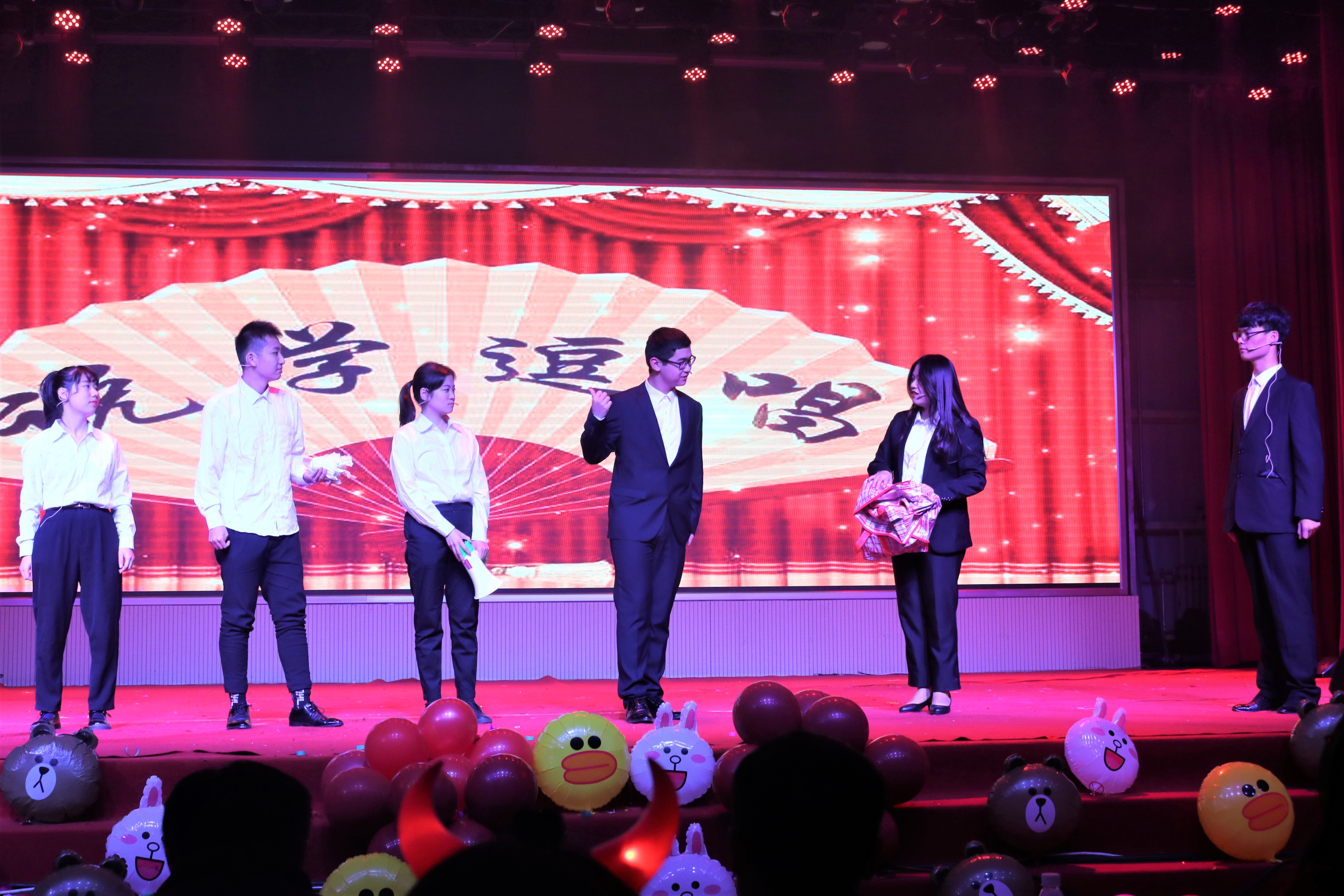整台晚会表演形式新颖、紧凑有序。开场舞《我们都是追梦人》展现了太阳成tyc122cc集团追梦不止、进步不息的理念。相声《你想暴富吗》诙谐幽默,饶有风趣。舞蹈《这就是街舞》、《幻影世界》激情四溢,点燃现场氛围,将晚会拉向高潮。歌曲《忽然之间》、《芦花》,舞蹈《Kill this love》、《浮花恋影》,小品《艺考》、《诚信中的买卖》,朗诵《我的祖国》等节目形式多样、精彩纷呈。现场还设置了两轮抽奖环节,把热闹的氛围一次次推向高潮。整场晚会慷慨激越、催人奋进,台上台下互动频繁,充分展现了公司员工的青春活力和蓬勃朝气。最后,公司领导、老师与全体演员进行了合影留念,晚会在一片欢声笑语中落下帷幕。