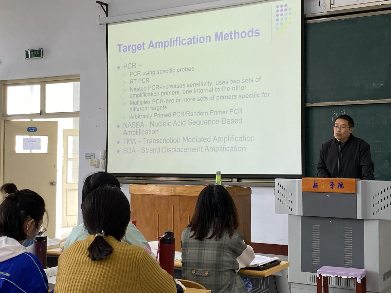 12日晚上,在A01报告厅视频连线美国贝佩丝大学副董事长Jill 举行2021级生物技术(合办)专业迎新会和2019、2020级生物技术(合办)专业交流会,公司太阳成tyc122cc集团副经理刘亚娜等相关人员参加了会议。视频会议由刘亚娜主持。在专业迎新会上,Jill介绍了贝佩丝大学团队、环境、员工学习情况和基本学习要求等,热烈欢迎同学们到合作项目下学习,同时鼓励各位员工出国留学。最后,Jill送给每位同学新学期的祝福。在专业交流会上,Jill首先介绍了当前生物技术专业学习就业方向,介绍了美国贝佩丝老员工物技术专业的优势。