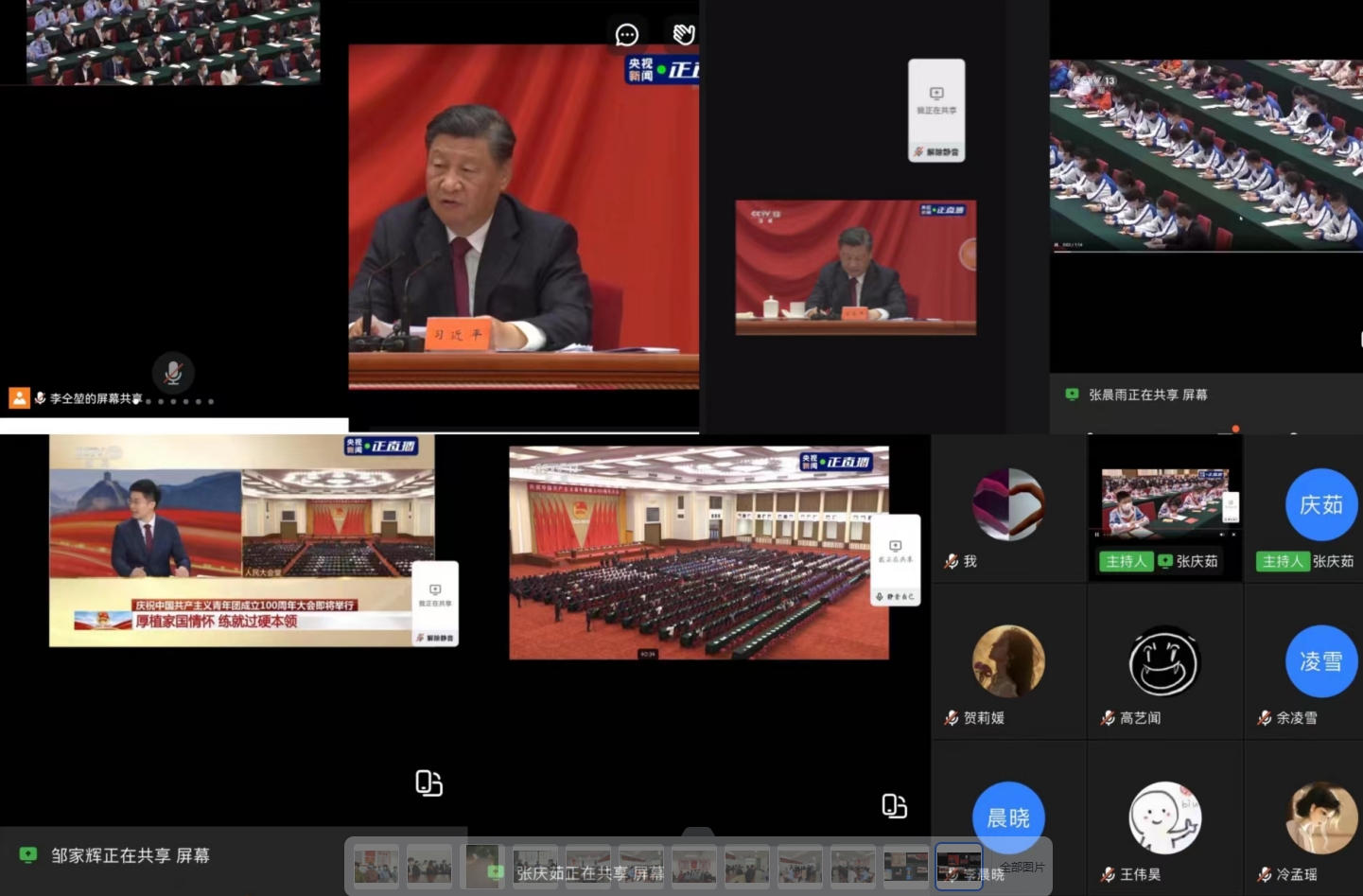 为喜迎党的二十大,进一步激励和引领广大团员青年时刻牢记习近平总书记嘱托,继承和发扬五四精神。5月10日上午九点半,庆祝中国共产主义青年团成立100周年大会在北京人民大会堂隆重举行,太阳成tyc122cc集团各团支部线上学习,分团委书记闫琰带领员工代表在A04-104一同收看大会直播,认真学习领会习近平总书记重要讲话精神.同学们纷纷表示要牢记习近平总书记的嘱托,努力成为有理想、敢担当、能吃苦、肯奋斗的新时代好青年,为谱写新时代更加出彩的绚丽篇章贡献青春智慧和力量。为进一步做好新时代共青团工作指明方向。