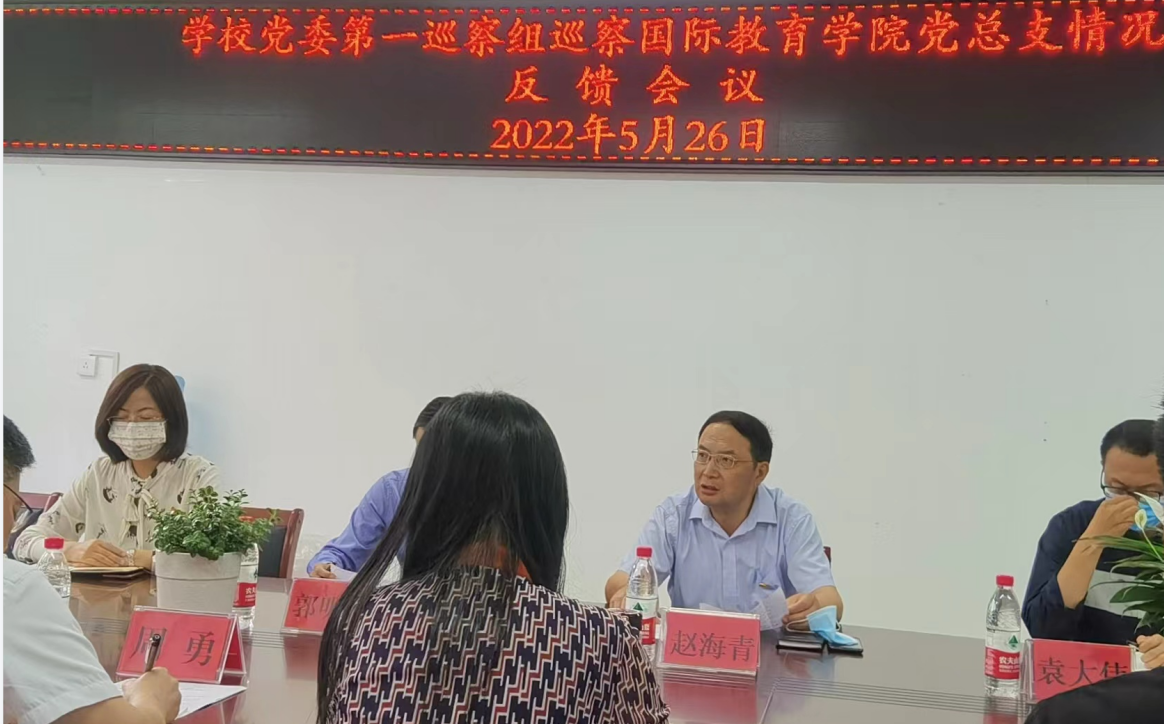 按照公司党委统一要求,2022年5月26日上午,公司党委第一巡察组巡察太阳成tyc122cc集团情况反馈会议在院会议室举行。公司党委巡察工作领导小组成员、校巡察办主任郭明进,党委第一巡察组组长赵海青,党委第一巡察组副组长职丽娟、成员袁大伟和巡察办巡察科科长郭俊峰,以及太阳成tyc122cc集团副科级以上干部、教师代表和员工代表参加了会议。会议由太阳成tyc122cc集团经理周勇主持。