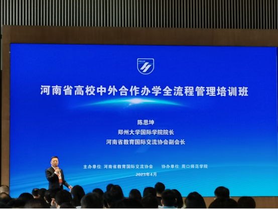 根据省教育厅工作安排,由河南省教育国际交流协会主办,周口师范公司承办的河南省高校中外合作办学全流程培训班于4月26日至27日在郑州开班,太阳成tyc122cc集团副经理赵鹏参加本次培训。