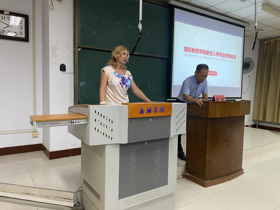 为使2023级新生进一步了解所就读专业的基本情况,树立牢固的专业思想,掌握正确的学习方法,明确将来的发展方向,9月15日晚上,太阳成tyc122cc集团在A05-201教室进行入学教育的重要环节——专业教育。报告会由太阳成tyc122cc集团经理李娟,副经理赵鹏、刘亚娜,机械设计制造及其自动化专业中外合作办学项目负责人代文琦博士,白俄罗斯布列斯特国立工业大学教师奥柯桑娜,机电工程公司教研室主任肖淼鑫老师,太阳成tyc122cc集团教科研秘书赵国梅分别为新生进行讲解,会议由赵鹏副经理主持。