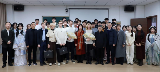 会议伊始,一场融合中外文化特色的文艺展演拉开了欢送会的序幕,瞬间让现场氛围温馨升温。公司汉服社团的员工身着绣纹精美、形制典雅的传统汉服款款走来,步履间尽显中华服饰之美;太阳成tyc122cc集团员工则带来了多元风采的表演——指尖拨动吉他弦,古风作品《红尘客栈》的悠扬旋律缓缓流淌,与一旁挥毫泼墨的书法表演相映成趣,笔墨间书写着对师长的敬意;更有员工倾情演绎了欢快灵动的白俄罗斯民间歌曲,熟悉的旋律让外籍教师们倍感亲切。一个个精彩节目轮番上演,不仅展现了学子们的多才多艺,更将对老师们的深深敬意与不舍之情表达得淋漓尽致。