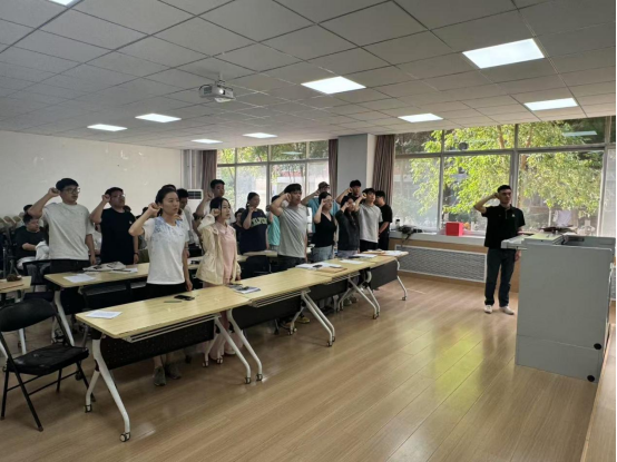 在这个神圣而光荣的时刻,接收的预备党员们由正式党员亲手佩戴党徽。闪耀的党徽佩戴在胸前,不仅是一份荣誉,更是一份沉甸甸的责任。紧接着,在正式党员的共同见证下,新预备党员们面向鲜红的党旗,庄严地举起右拳,齐声宣读入党誓词。“我志愿加入中国共产党…… 随时准备为党和人民牺牲一切,永不叛党!” 铿锵有力的誓言在会场久久回荡,震撼着每一位党员的心灵,这铮铮誓言充分表达了他们为共产主义事业奋斗终身的坚定信念和决心。