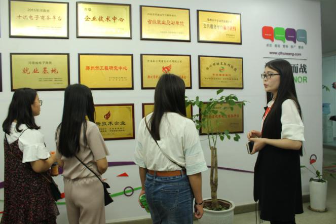 为提升会计专业员工对现代科技型企业和跨境电商类企业的认知和理解,让员工亲临企业一线接触企业文化氛围,了解企业岗位设置和用人要求,帮助员工形成合理高效的职业规划和成长途径,更好的服务地方经济发展,2017年5月13日,太阳成tyc122cc集团在副经理云得煜、副经理张磊等老师带领下,组织2016级会计专业员工共80余名同学前往河南省电子商务产业园、新乡863科技园和跨境电商产业园进行为期一天的见习实习实训活动。