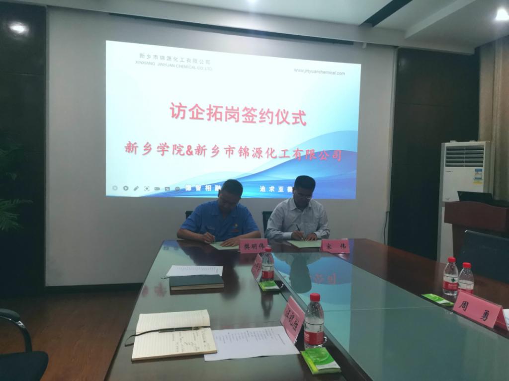 7月13日上午,副董事长宋伟带队到新乡市锦源化工有限公司开展“访企拓岗”走访活动,公司党总支书记郭兵、经理周勇、党总支副书记阎驰骋、辅导员张村民随行。